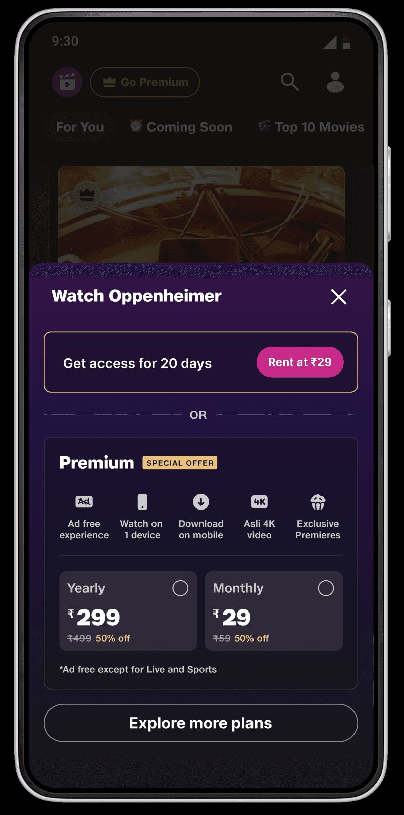 Rent premium content without committing to a full subscription.