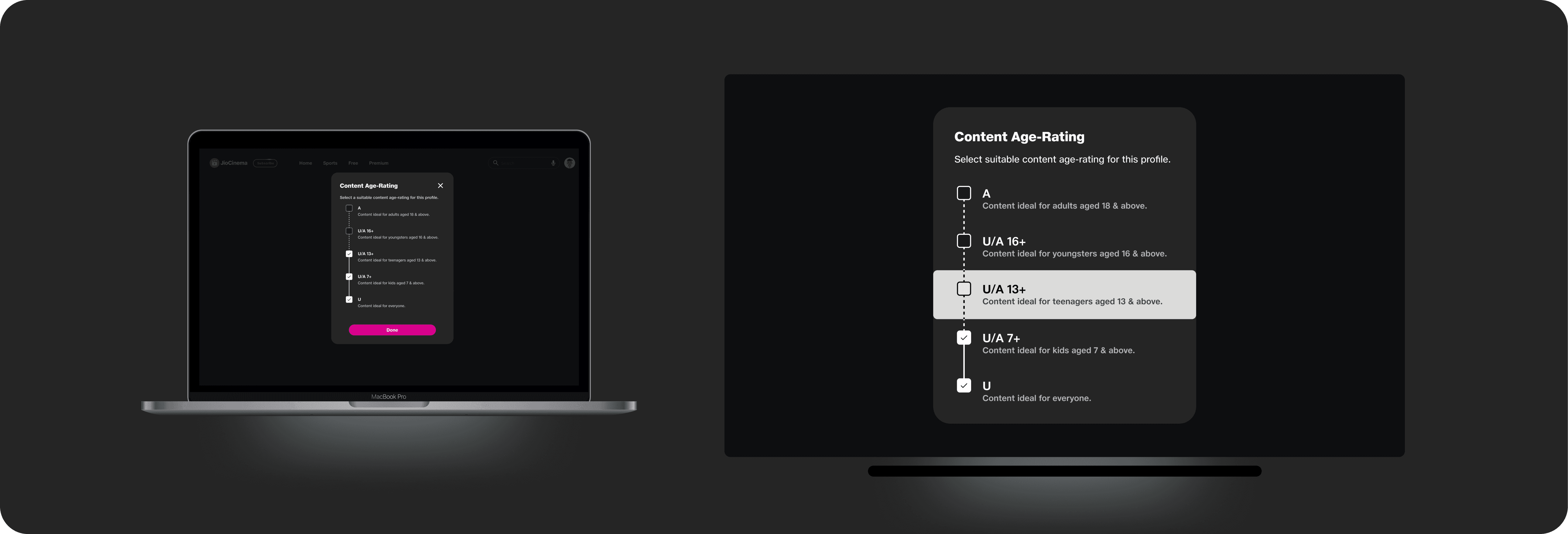 We wanted to create a safe space for families and kids by letting users set an age rating for each profile. It ensured children saw only age-appropriate content, while adults received personalised recommendations and relevant ads. This simple step made JioCinema feel more personal, secure and family-friendly.