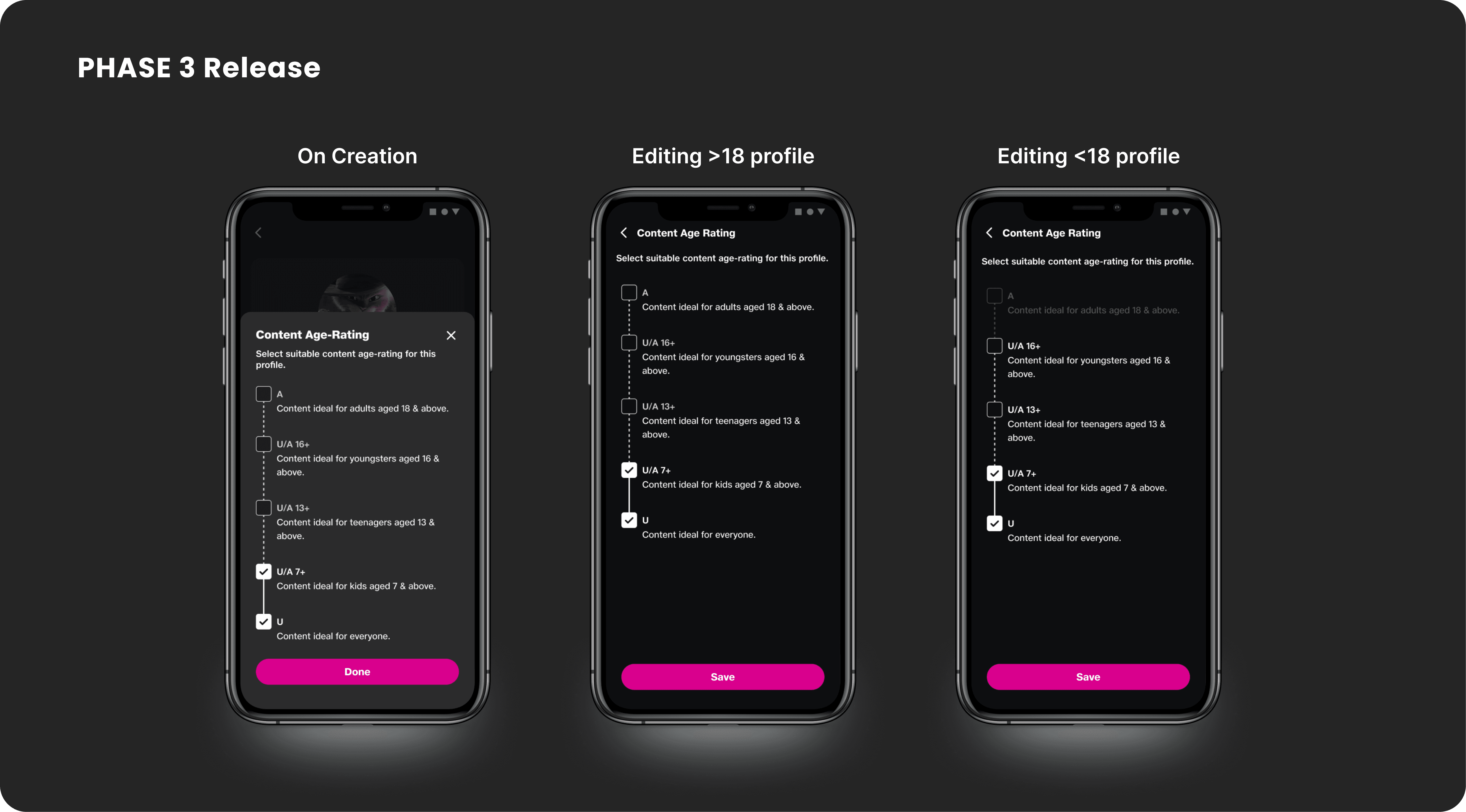 Editable Fields in Kid Profiles: We had to define clear limits on what could be changed in a Kid profile (e.g., age rating was locked post-setup to prevent misuse)