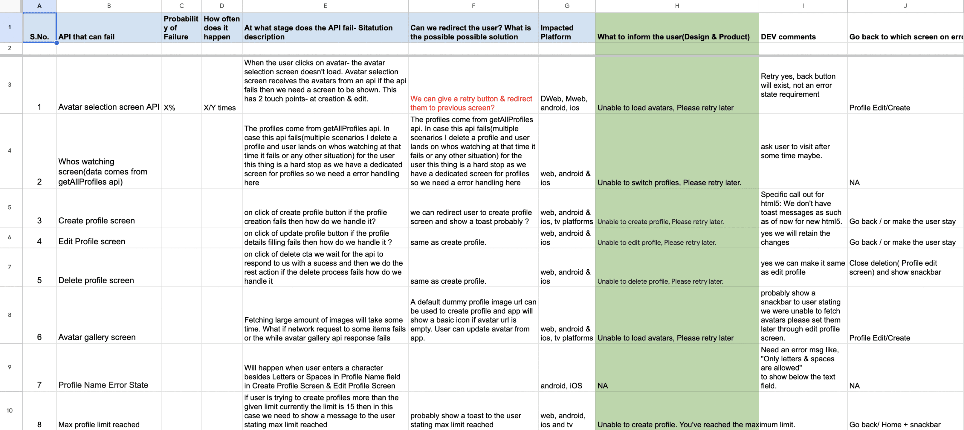 After the delivery of Phase 1, I came across the fact that we did not handle the error states. Anticipating hiccups is half the job. I collaborated with engineers to map out and list critical error cases and edge scenarios, such as: